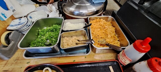 天かす、ネギ、生姜、大根おろしは自分で入れるスタイルです。