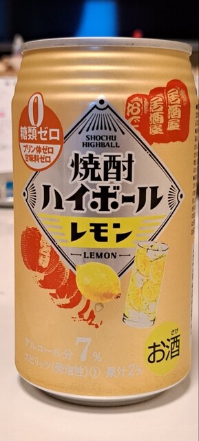 あと、私的にオススメなのが「焼酎ハイボールレモン」ですが、コレ、安くて結構旨いです!!