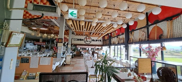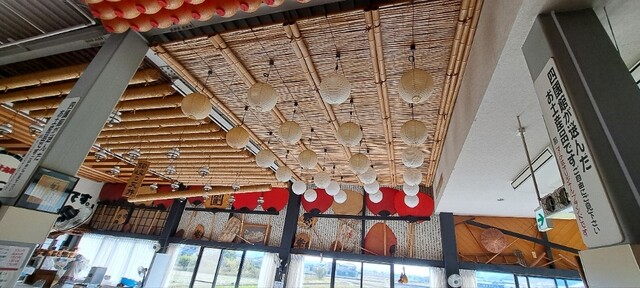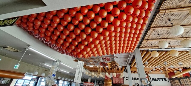 中に入ると、団体客向けのテーブルがズラリと並べられてあり、天井には提灯がたくさん吊られてます。