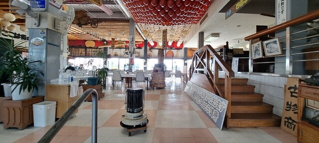先客は居らず、広い館内には客は私1人で、テーブルの隅では従業員さんが人参を切ったり、いなり寿司を作ってました。ホントに館内が広すぎて、ポツンと私1人だけです(笑)!!
