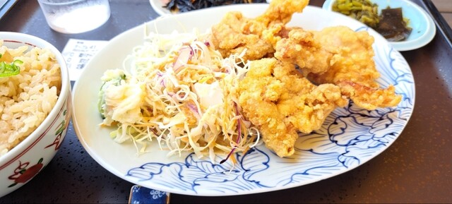 鶏ももからあげ定食、地エビのかき揚げ定食
