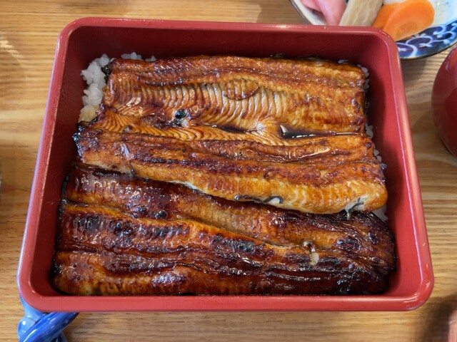 うな重と肝吸いも流石安定の味。こちらのお店のうなぎは大きめなので食べ応えがありました。