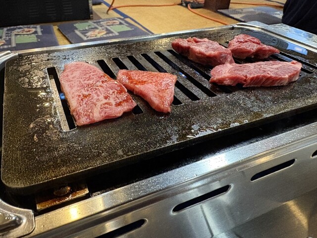 「壁に書いてある手書きメニューが本日安くてオススメです」ということでハラミタン¥2,500、メニュー表からカルビ¥1,300、大ライス¥350、ノンアルコールビール¥350をチョイス。