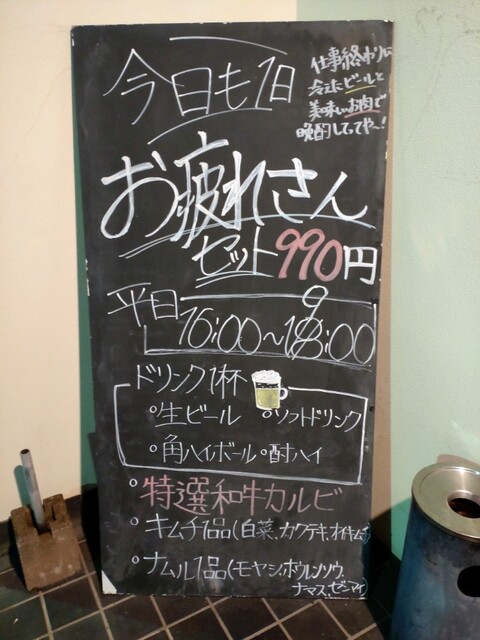 平日夜に伺ったのでお疲れさんセットがあるのを入店時に見て早速注文❕