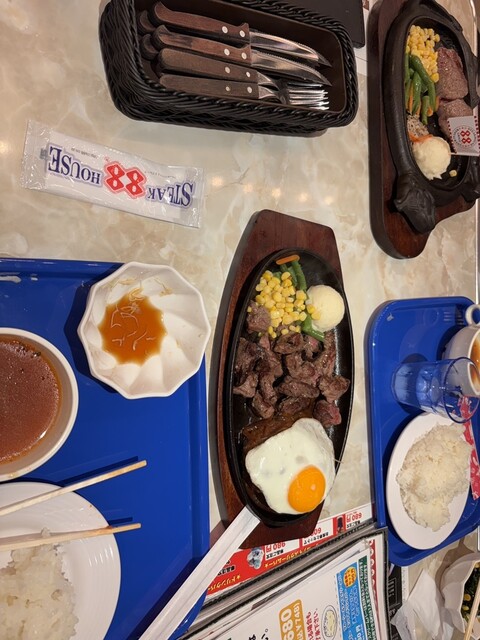 アメリカンビレッジは、想像していたより広くて素敵なところでありました。スケボーしてる若者や、米兵が歩いており本当に外国のようでありました。着く頃にはかなり空腹であったから沖縄で有名なステーキ屋に入室。観光客向けと思っていたら意外にも❗️かなり美味かったです。ちゃんとした食べ応えあるけど食いやすい肉でありました。ハンバーグも美味かったのですが多すぎた為プラッチックに入れて持ち帰ることにしました。
