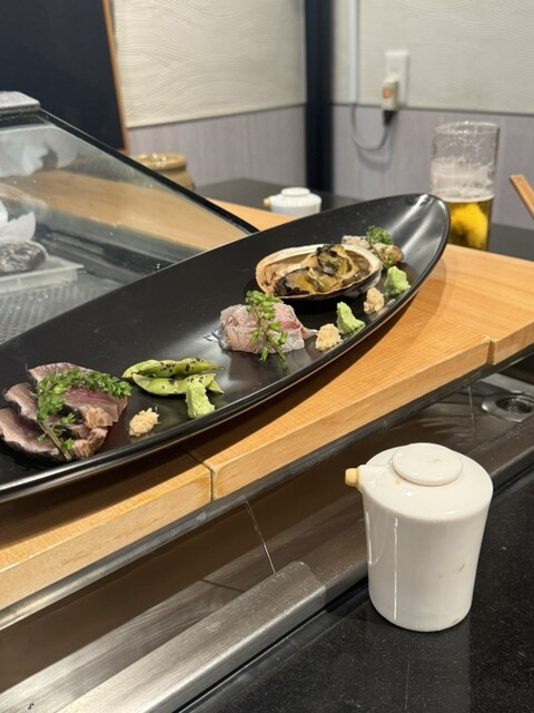 4度目の来訪。料理の構成、メニューは毎度変化する。同じ料理でも微妙にお客様の声や季節に合わせて趣向が変わって流石スギシェフ。料理の説明から想像が膨らみ、味わうことで味覚にて一つの物語が完結する感覚を味...