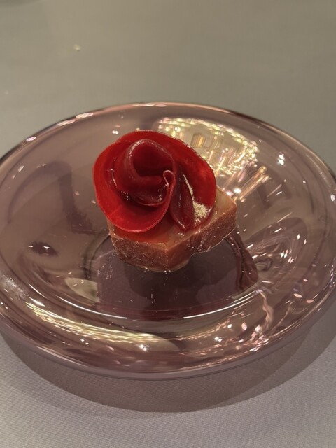 4度目の来訪。料理の構成、メニューは毎度変化する。同じ料理でも微妙にお客様の声や季節に合わせて趣向が変わって流石スギシェフ。料理の説明から想像が膨らみ、味わうことで味覚にて一つの物語が完結する感覚を味わえる。スギシェフの温かいお人柄も含めて最高。