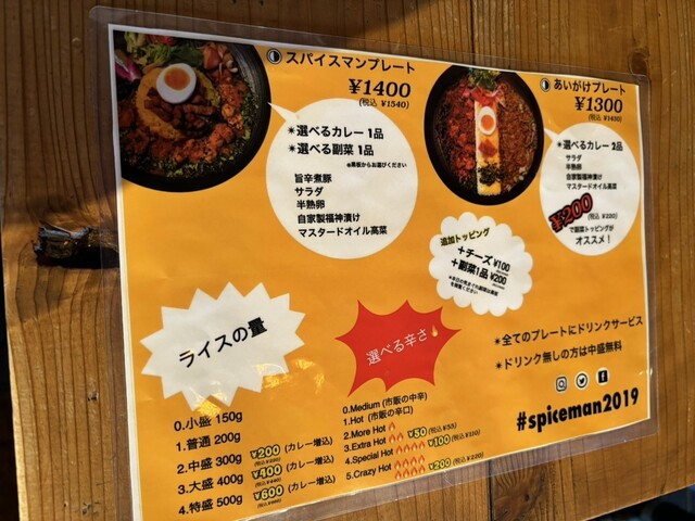ご飯の量も、辛さも選べるので、友人は0の少量にして私は普通の①に