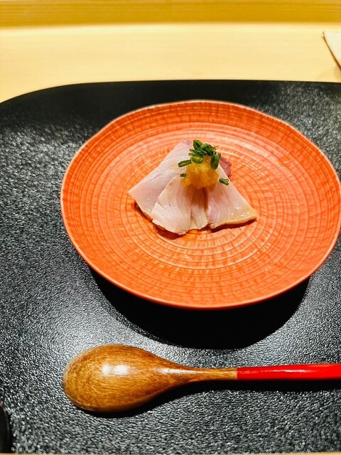 鍋島の心地よい甘さと微炭酸の酒に、ブリの旨みと薬味が最高でした。
