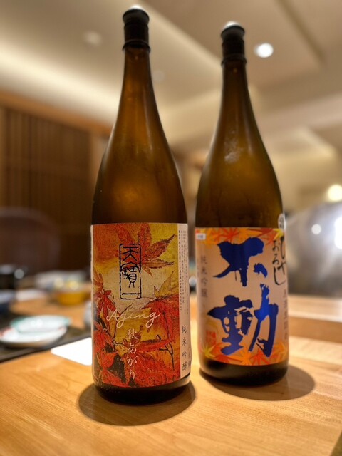 今回はコースの【虹】と【日替わりの日本酒】を二種類をオーダー!