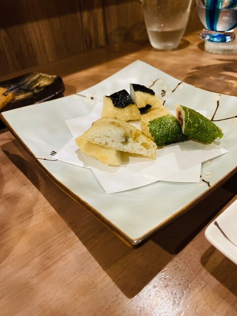 まずは日本酒をオーダーし、メニューを見ていると自分好みのメニューでちょっと迷子になりかけましたが、最初のオーダーはあん肝、無化調のお漬物、鯛山葵、揚げとろをお願いしました。