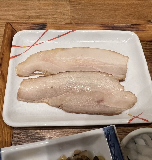 チャーシュー、炙りネギ、生玉ネギなどのトッピングがラーメンと分かれて提供されます。