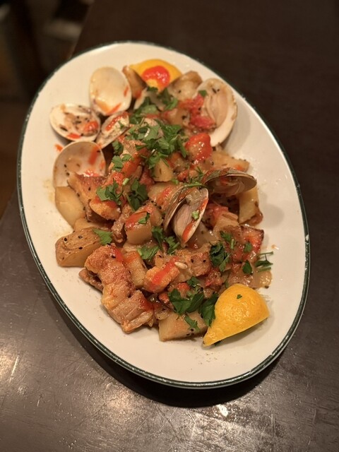 豚とハマグリのアレンテージョ風炒めは、アンチョビの風味が日本人にも馴染む“和×洋”の良さを感じるメイン料理でした。
