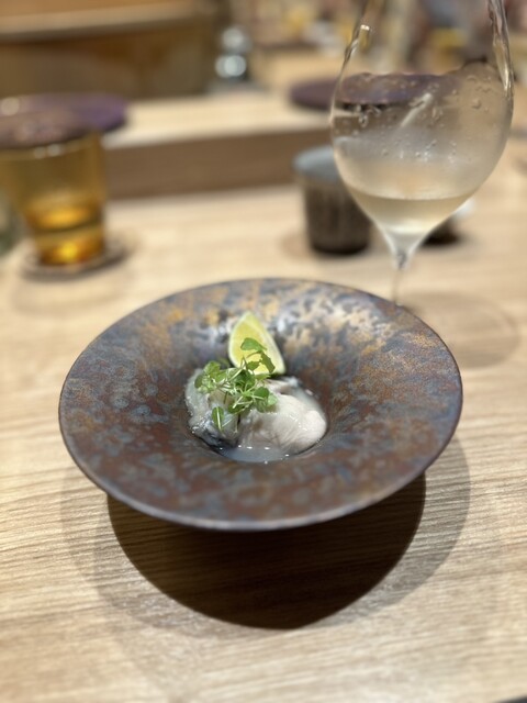 新鮮な牡蠣は、海の香りと甘みがしっかりと感じられ、濃厚でありながらも後味がさっぱりとしている。クリーミーな食感と程よい塩気が絶妙で、ぷりっとした身の弾力が楽しめる。生牡蠣の良さを存分に味わえる一品。