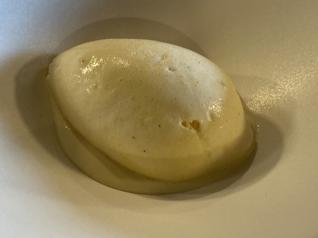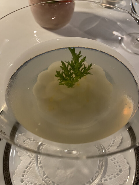 シャキシャキとした食感の中に「緑の香ばし甘さ」、みたいなものがあって、それとキャビアのほのかな塩味、玉子?が見事に合って美味しい。
