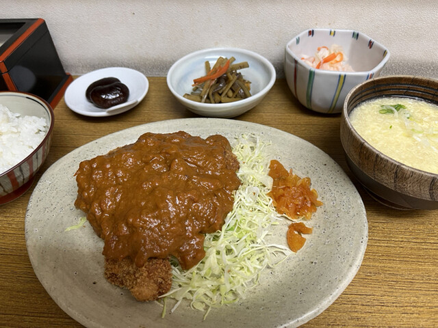 チキンカツカレー、カレーは辛味は少なく、酸味、甘味、コクがあります。ハヤシライス寄りかな。さっぱりし...