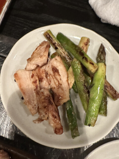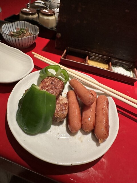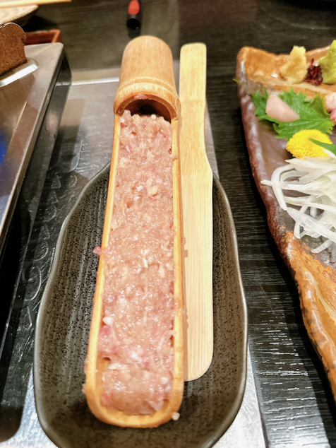 つくね焼きを、生ピーマンの上に載せて馴染ませて食べるの、超絶美味しい。これも毎回食べる。