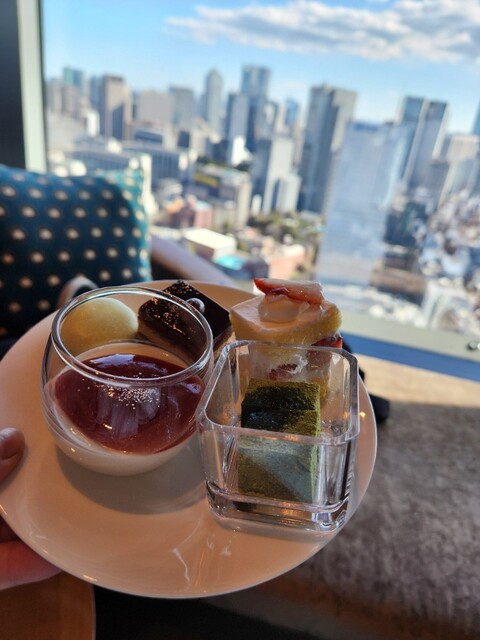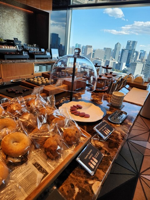 こちらのクラブラウンジからも眺望がよくて、眼下には衆議院・参議院議長公邸などが見渡せます。スイーツ(ケーキ)類は、カクテルタイムやスイーツタイムどちらも食べることができます。カクテルタイムにもアペタイザーやチーズなどがあるので少食の方やお酒メインの方はクラブラウンジの食事だけでも十分だと思います。