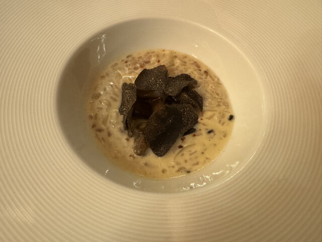 ◯ 有機十六雑穀米のクリームリゾット 森の木ノ子達とフレッシュトリュフのスライスを敷き詰めて