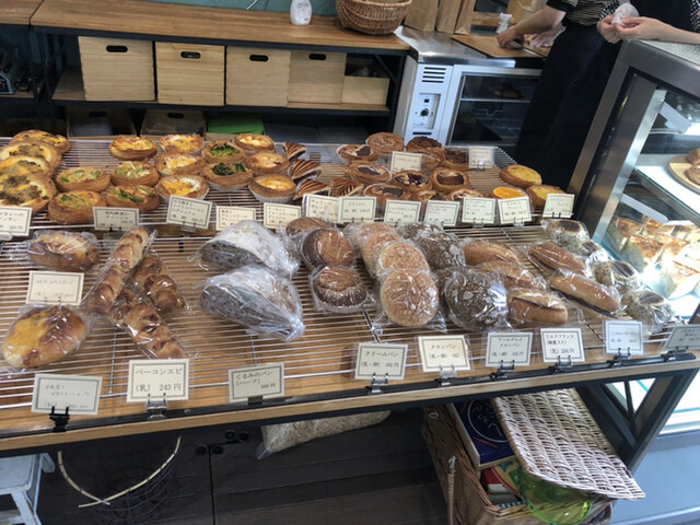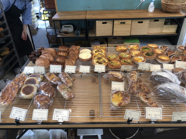 開店10分前に着いたのですが、すでに数名並んでおられました。お店前のスペースに、かごや、ブリキの鉢カバー、ガラスの花瓶などが置かれていたので、待ってる間に欲しい物で両手が塞がりました。オープンしたら、お店の方がまず選んだ雑貨を預かってくださり、パンのトレイが持てるよう気遣ってくださいます。