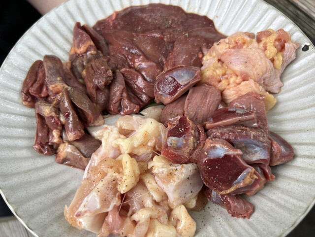 いつも通り地鶏(塩・タレ)、ハツ、皮。