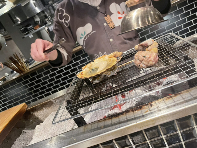 目の前の炭火で絶妙な焼き加減でいいタイミングで網の手前に寄せてくれます!