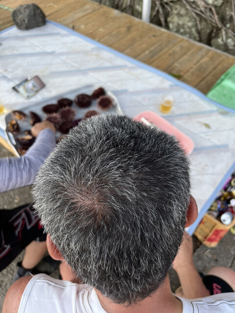 水揚げしたばかりのウニ 鯛の刺身 ワタリガニ タコ なんか貝w