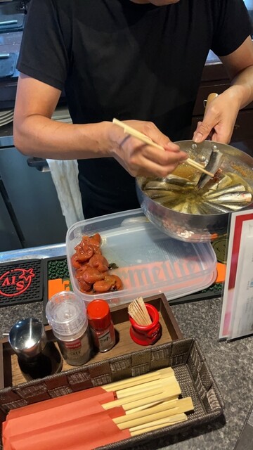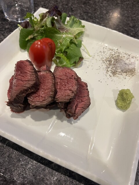 ちょいとつまみたいって気分で馬刺盛りとしまらっきょの天ぷら(^^)