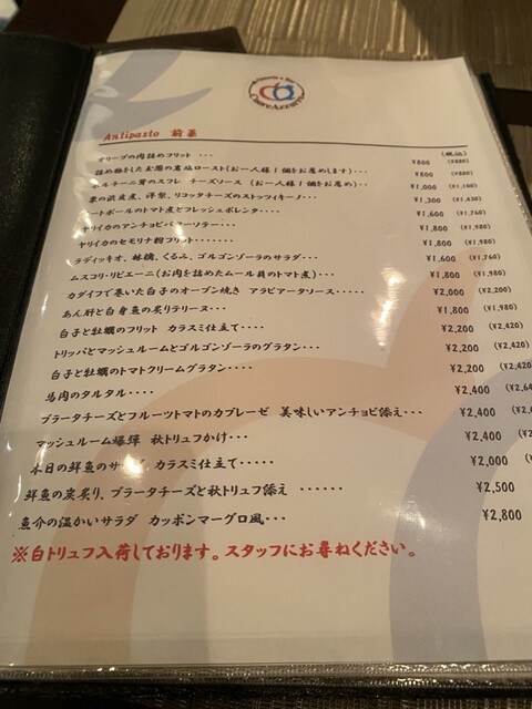 2人で行ったのですが、アラカルト3品、パスタ一品、魚、お肉がちょうどいい量とのこと!