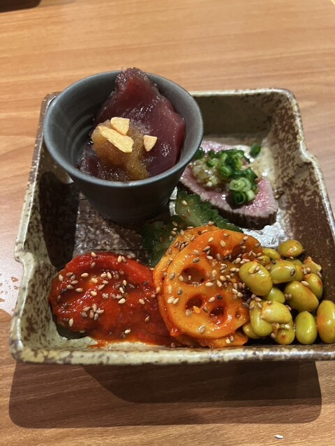 彩り豊かで見た目から楽しませてくれる一皿。旬の食材を少しずつ味わえるので、最初からテンションが上がります。