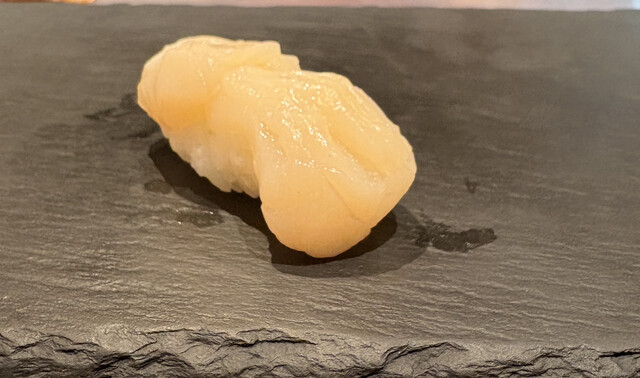 ここでは“江戸前”という言葉が、形式ではなく“呼吸”のように感じられる。シャリはほどよく人肌で、噛むたびに米粒がふわりとほどけ、酢の酸味が魚の旨みを優しく引き立てる。特に中トロは、脂が甘く、口に含むと静かに溶けていくよう。光り物の締め方も見事で、塩と酢の余韻がまるで小さな物語のように残る。