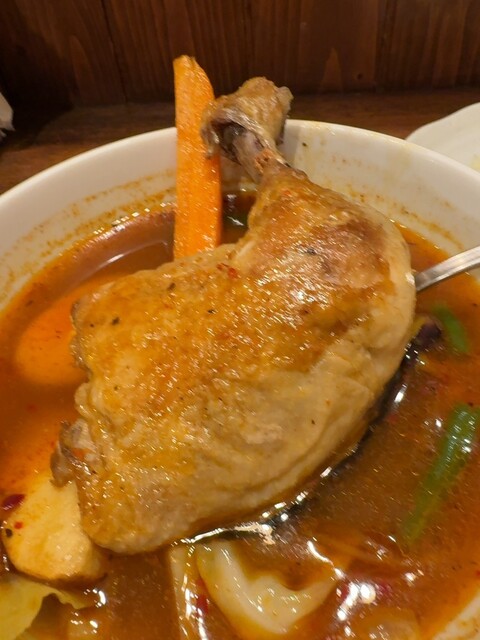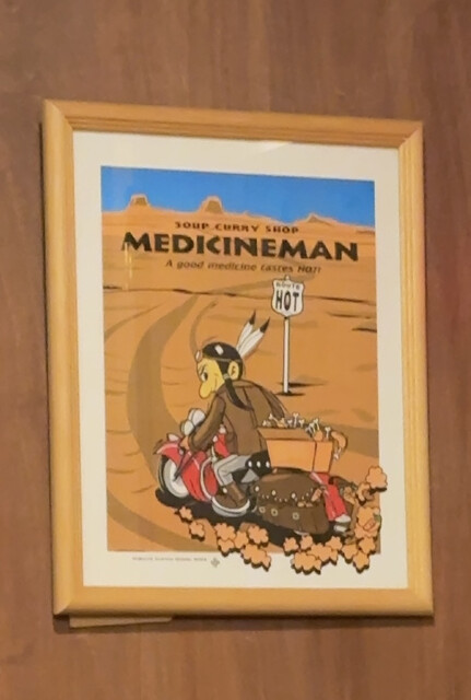 中島公園からまあまあ。最強のスープカレー、メディスンマン。本年度一回目。せっかくグルメ紹介されてしまったので、とても心配してましたが、平日、雪、すんなり入れました。チキンカレーホット2。1490円。最初は油断すると咳き込む辛さですが、すぐにちょうど良く、しかし、ここのスープはうまい!美味しかったです。
