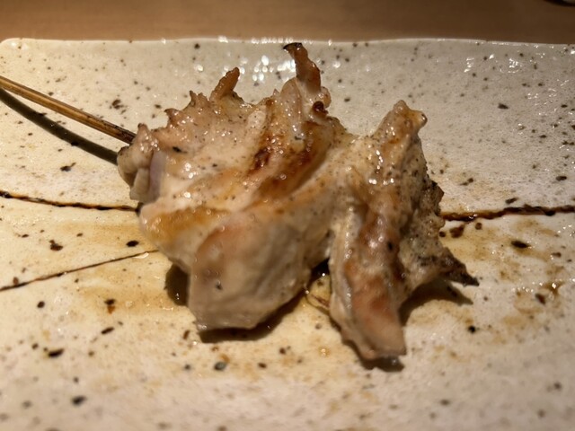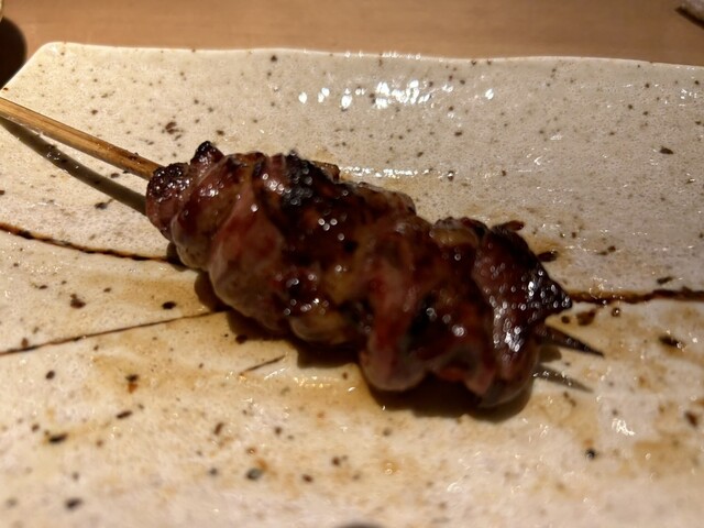 早速に焼き鳥が一本ずつ供されます。モモやムネ、ササミ、ハツ、レバーなどやや大振りの串が信じられないくらいジューシーで瑞々しく、それでいて旨みもたっぷり味わえる素晴らしい火入れです。