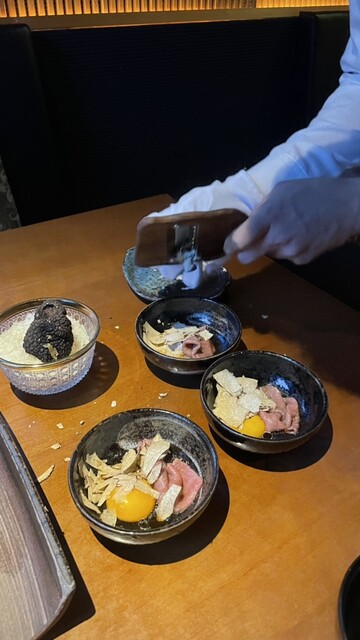 基本的に全部美味しいのですが、個人的に美味しかったのはシャトーブリアンと、ザブトンのすき焼きトリュフ添えです。あと好みもあってユッケと2種の刺し(種類忘れちゃいました、多分ミスジとあと1つ)最高でした。