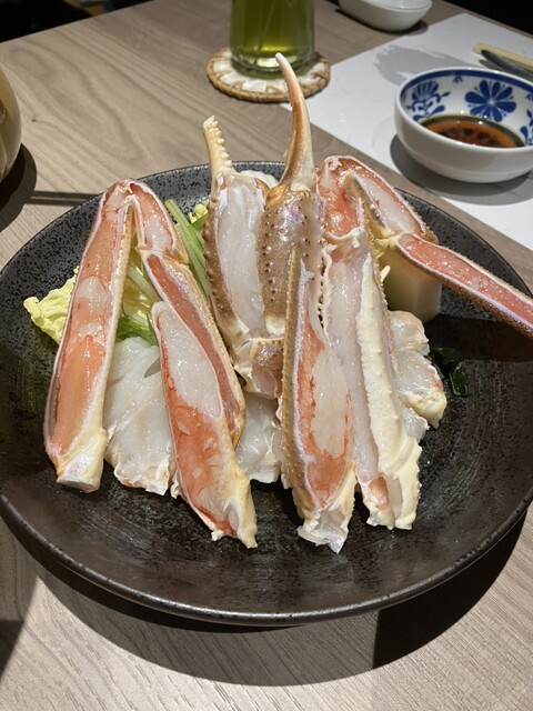 カニしゃぶコース(ズワイ)2人前と単品たらばしゃぶ、白ワイン3本頂きました。