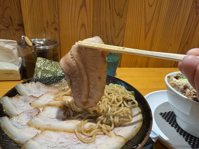 購入したのは鷲掴みとんこつ、お肉たっぷりトッピング、きざみチャーシュー丼、替玉全部のせ
