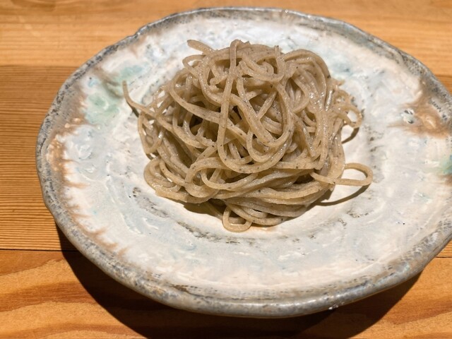 1〜2枚目に比べて食感に変化あり。ざらざらとした舌触りがいい塩梅に引っかかりながら、蕎麦の香りと甘みを口いっぱいに広げてくれます。