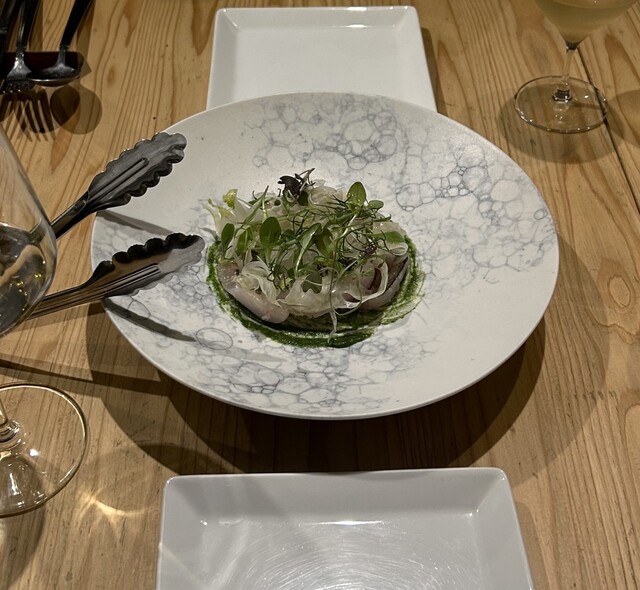 カルパッチョのお魚も鮮度が良く炙られた皮が