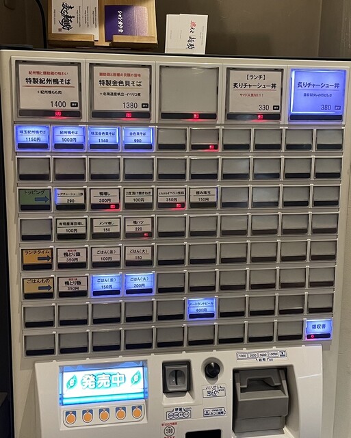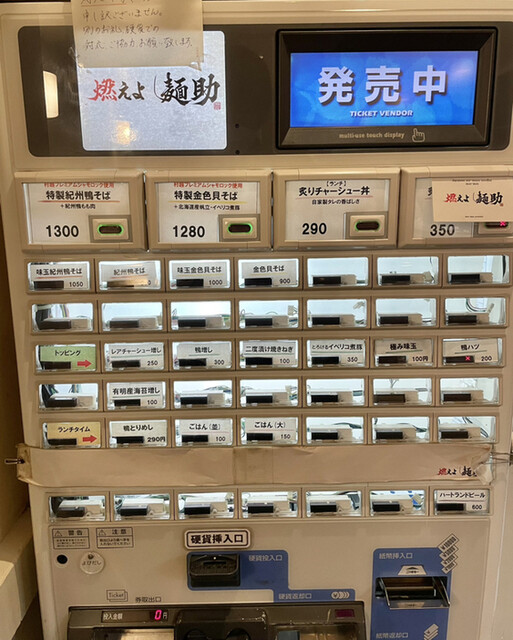 注文方法は券売機の"味玉鴨そば(¥1050)"の食券を買って店員さんに坦々麺と伝えるとのこと✍️