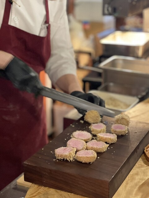 初めにその日使う銘柄豚をズラリと並べて紹介し、目の前で揚げまでの工程が見れるライブ感、そしてなによりとんかつの圧倒的な美味しさはまさにオンリーワン