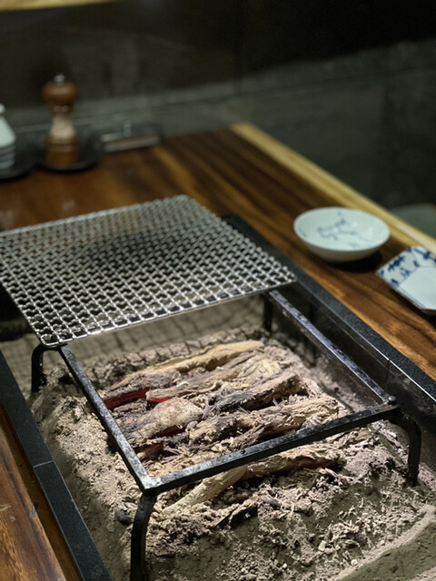 テーブルの真ん中に炭火がセットされたら提供スタート