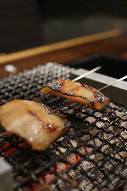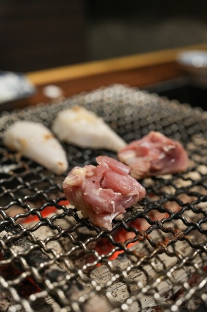 落ち着いた照明の店内の中、備長炭を使った炭焼きで楽しみながら食材を焼いていく、というのはまさに心斎橋の賑やかさから隔離された別世界です
