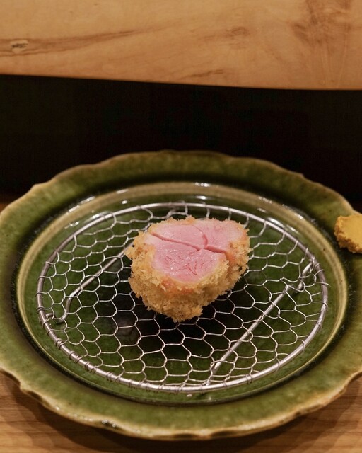 一口食べるとまず感じるのが粗めの衣のサクサク感、そして噛むと肉汁が口の中に広がる赤身からは丁寧な火入れを感じられます
