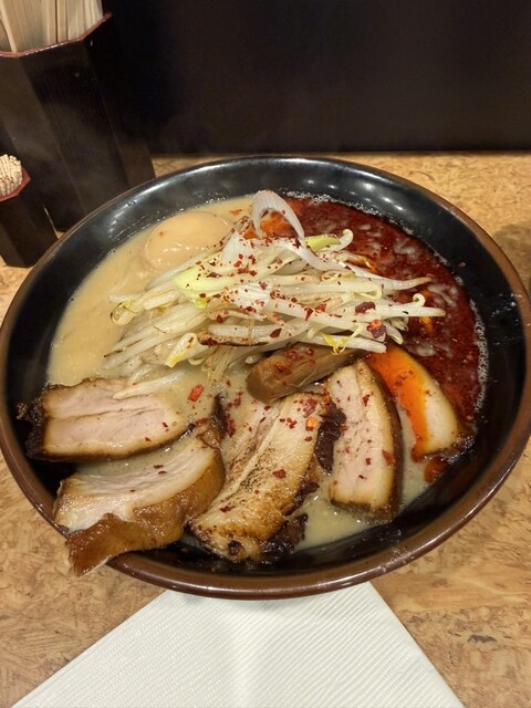 頂いたのは辛味噌の味玉チャーシュートッピング