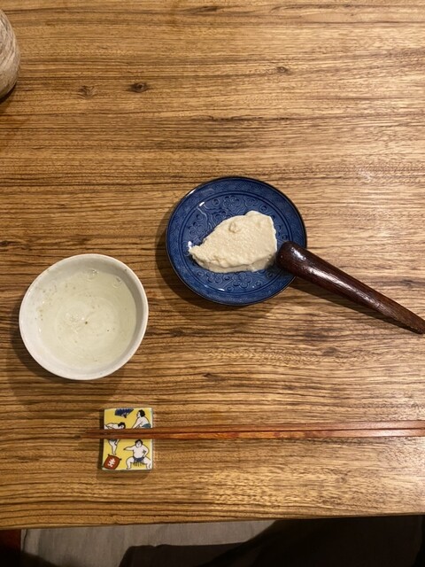 蕎麦は7品だ。5種の蕎麦を手挽きし、6種の麺を打っている。全て手打ちで十割だろう。蕎麦がきを含めると8品になる。まず三芳産の細切りは秋蕎麦とのこと。塩のみで頂く。確り旨い。次からは塩とつゆで頂いた。つゆは出汁感が強い。塩味控えめであっさりとして良い。一皿目と同じ三芳産の幅広の平打ちはやや暖かい状態で提供される。味の広がりをより感じるのは形状と温度のためだろう。庄原産の太打ちは縦の食感がとても強いが、軽やかな味わいで食べ易いから面白い。次の平打ちは高千穂産だ。結構冷たく締めている。味は淡白でさっぱりと。5皿目の中細打ちは長崎の2年熟成とのこと。粗挽きで溢れる風味がいい。次の三瓶産の2022byは田舎蕎麦で。かなり暖かい温度帯の平打ちだ。味と香りが濃厚で旨い。ラストの種物は近江牛の小腸とのこと。油脂がとても美味しい。様々な蕎麦の部位が入っている。余すことなく頂いた。デザートは黒糖のブラマンジェを。最幸だった。