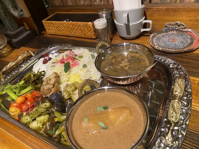 夏の終わりに独歩ちゃんの自然の幸溢れるプレートを。お住まいである秩父の食材を多く使われて、秋の気配を山や森や川の恵みから窺う。丁寧に作られた多様な料理がボーダレスに共存して融合する。身体と心が、沁み滋味美味しいと喜び続けて止まらない。思考は食事の後から追いかけてくる。食前の親切な説明がパズル感覚で余韻を深めていく。教えたくないけど伝えたい。素晴らしいカレーでした。今後も機会を見つけたいと思います。どうも有難う。