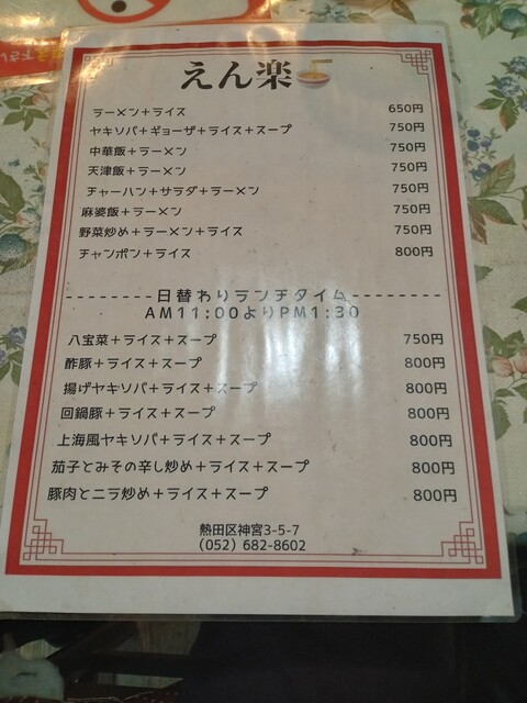 えん楽神宮前、熱田、熱田神宮西/中華料理、ラーメン