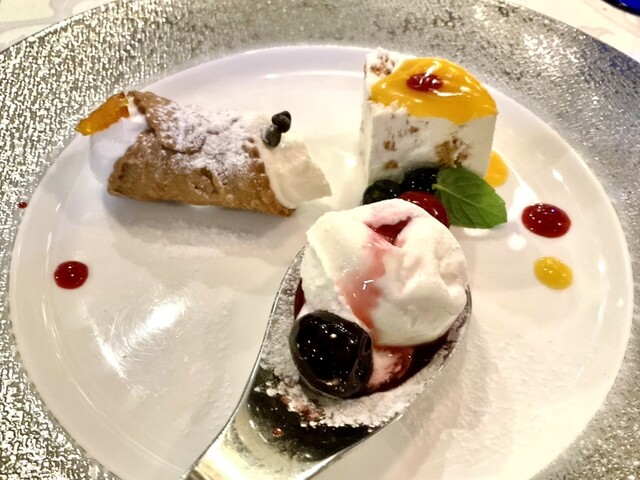 結局のところ、シチリアの海の幸を使った味覚イメージを愛でるので、シチリアピスタチオが様々に変化していく前菜やパスタ、ロブスターにすら添えられた柑橘、シチリア発祥のカンノーロも入ったデザート、コースが幸せなのです。お料理とマリアージュに一緒に向き合えるパートナーがいて更に幸せでした。