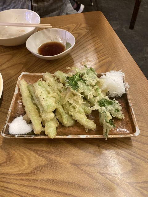 続いて揚げ物メニューのセロリの天ぷらとピーマン肉詰め。揚げ物は最初から作っているのか? 大分に時間がかかります。で、お味は家庭料理の様で量も多いです。