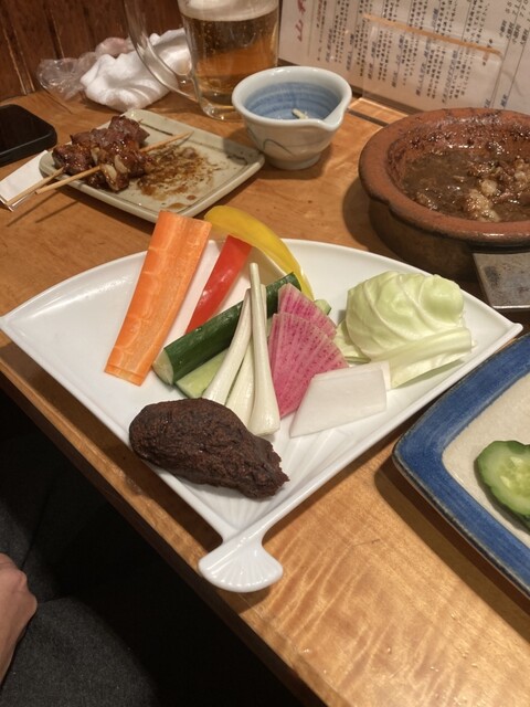 鮮度、肉質、焼きの全てにこだわりが感じられます〜 他に生野菜の焼き味噌添え。濃厚な焼き味噌はコレだけでもアテとして充分な威力があります。その後は自家製の燻製盛り合わせをアテにして、自家製ミンチカツで締めとしました。